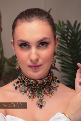 Regal Multicolor Kundan & Stonework Choker Set – Aeindri Premium Collection
