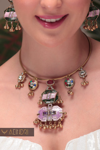 Aeindri Multicolor Enamel & Stonework Statement Choker Necklace Set