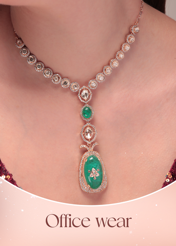 Aeindri Regal Emerald Green Necklace & Earrings Set