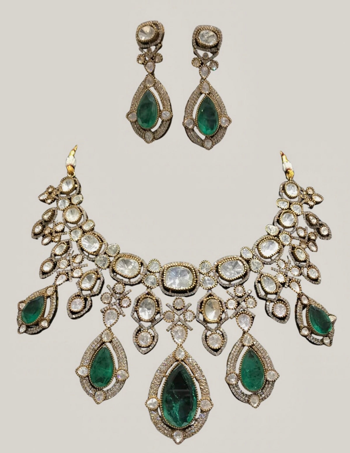 Green Zari, Stones Kundan Embellished Necklace Set – Aeindri Premium Jewellery