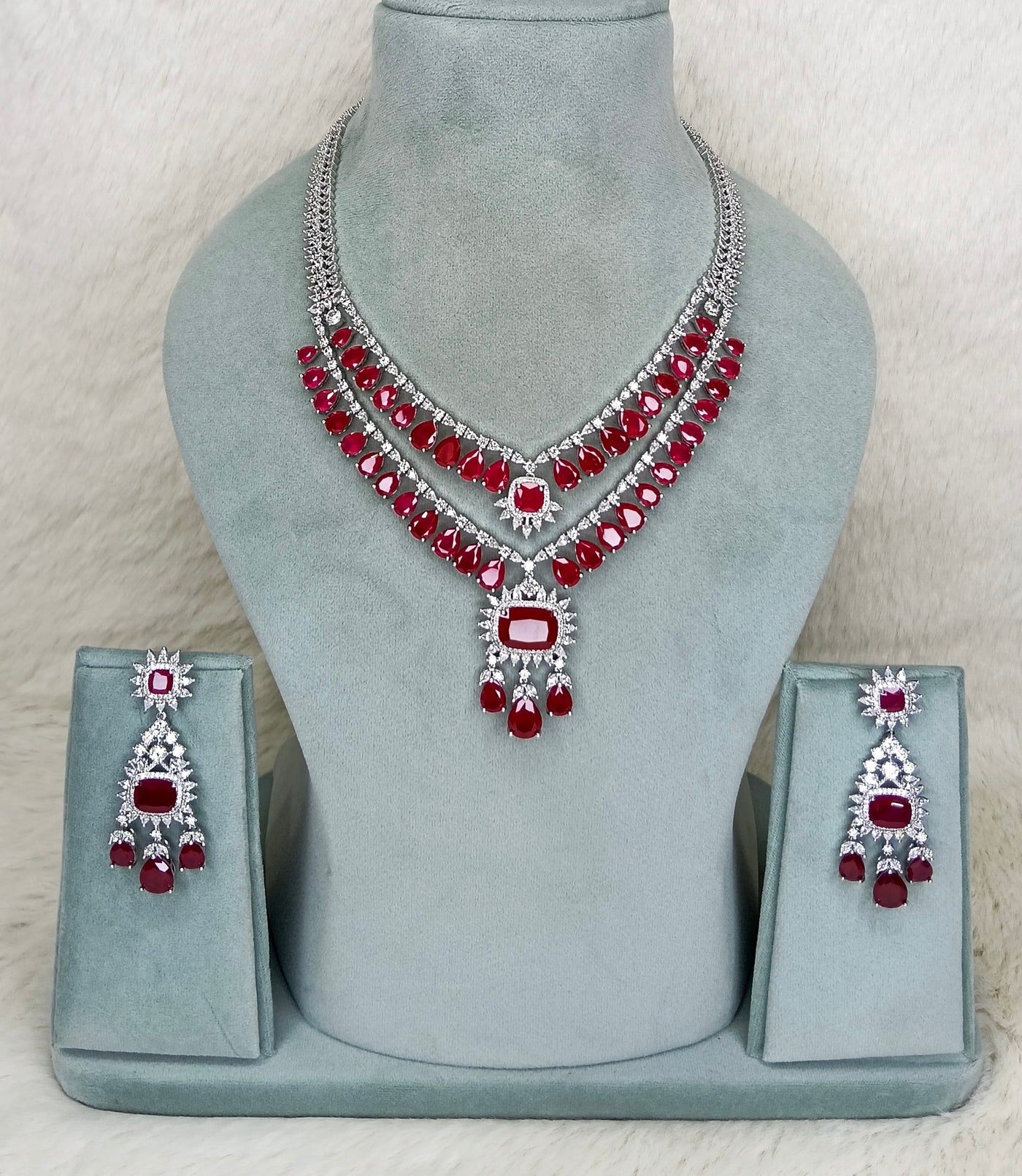 Luxury Ruby Red & Diamond Look A1 Quality Necklace Set”